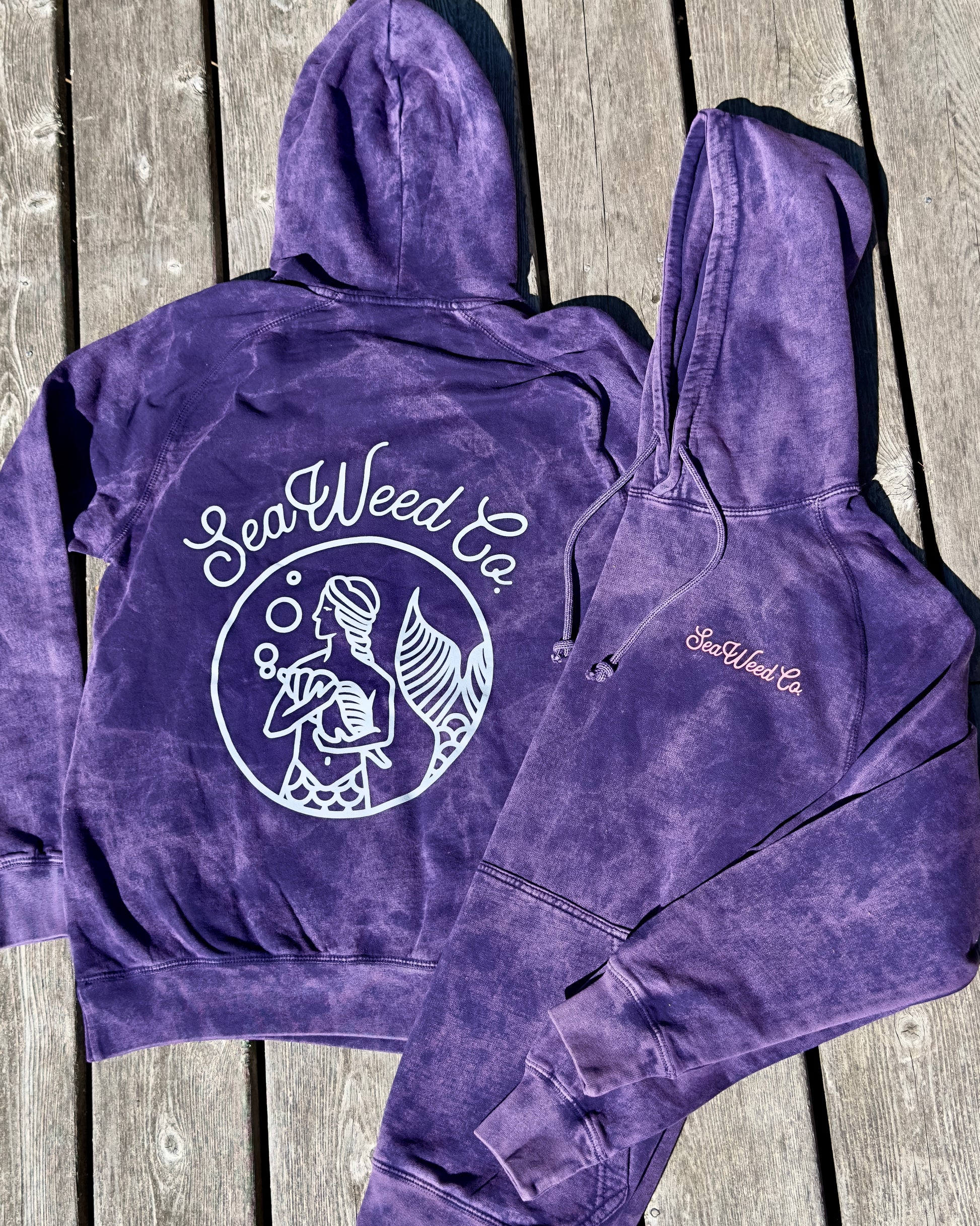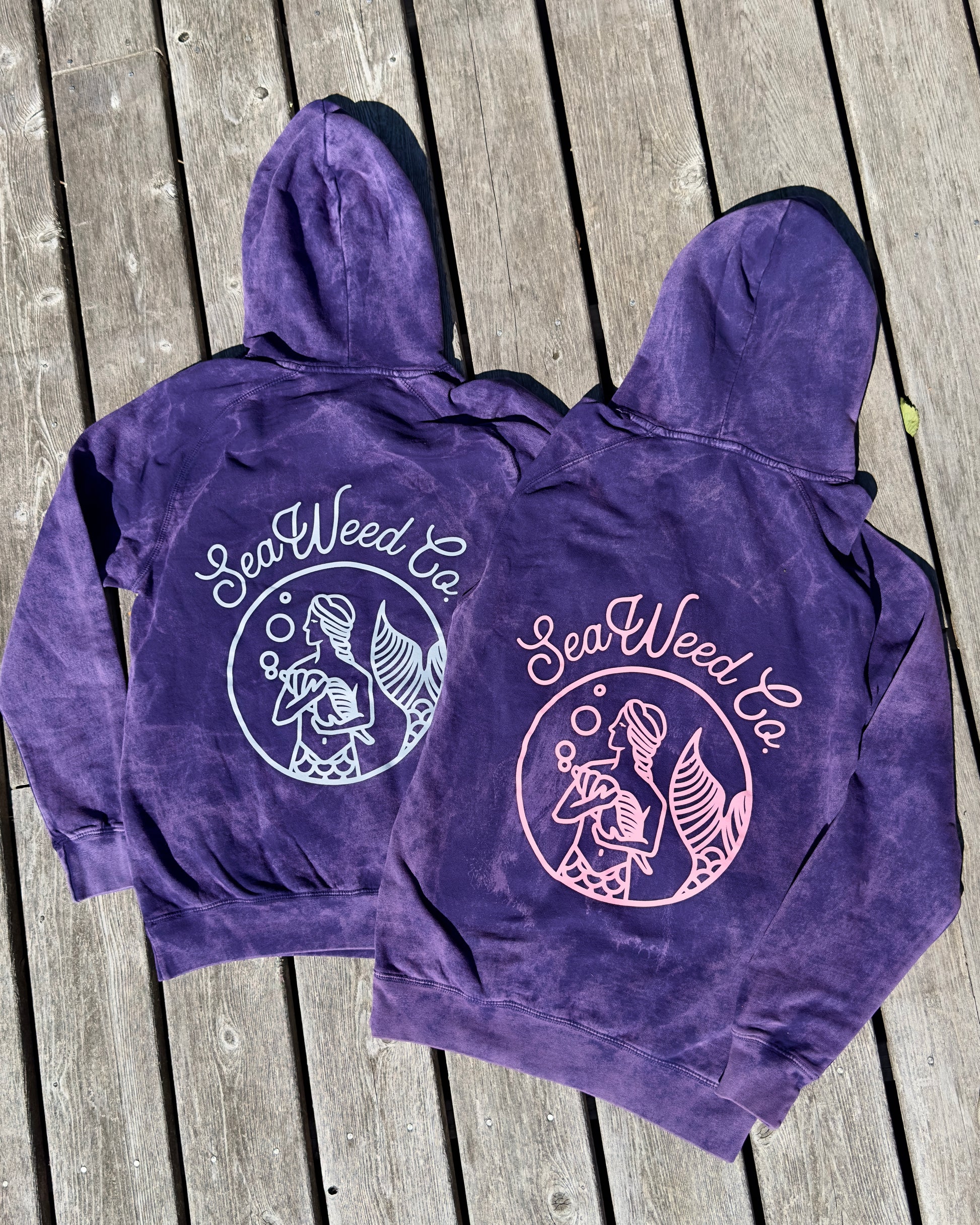 Back: Large circle mermaid logo with Seaweed Co. script on top